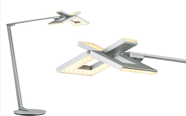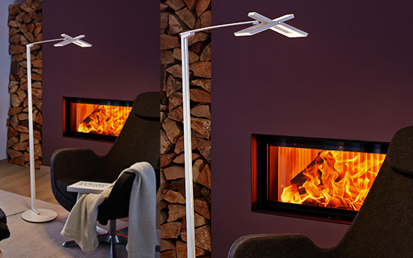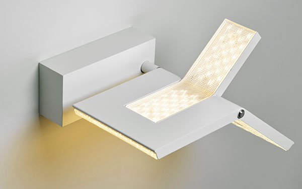 Ein Spiel mit formalen Gegensätzen. Grafisch exakt und kühn erscheint die Konstruktion des Aus legers. Außen minimalistisch, innen umso brillanter der Leuchtenkopf mit seiner weich streuenden Prismatik. Anmutig spendet LiGHT BOOK ermüdungsfreies Arbeitslicht für den Schreibtisch oder perfektes Lese licht für lange Abende am Kamin. in seiner inten sität jederzeit stufenlos über den Dimmtaster an der Stirnseite regulierbar.