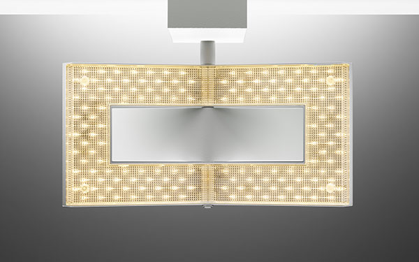 Charakteristisch für sämtliche Leuchten der OLIGOplus Kollektion ist ihr schöner Schein. Weich gestreut und zu den Rändern hin sanft auslaufend erstrahlt das Licht. Mehrfach gelenkt und gebündelt von einer mannigfach facettierten Prismatik – sorgfältig berechnet erfährt jede Leuchte ihre individuelle Interpretation im Lichtbild.