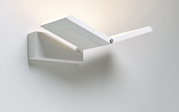 Die Wandleuchte ergänzt die Leuchtenfamilie – oder überzeugt als Solitär in Entrée, Lobby und Galerie. Symmetrisch das Verhältnis von Flächen und Achsen. Als Aufbauvariante ist die Wandleuchte sowohl waagerecht als auch senkrecht montierbar. Unverkennbar auch hier der formale Anklang an die Welt der Literatur in Gestalt frei drehbarer LED-Segmente. Die besten Geschichten haben eben einen überraschenden Wendepunkt.